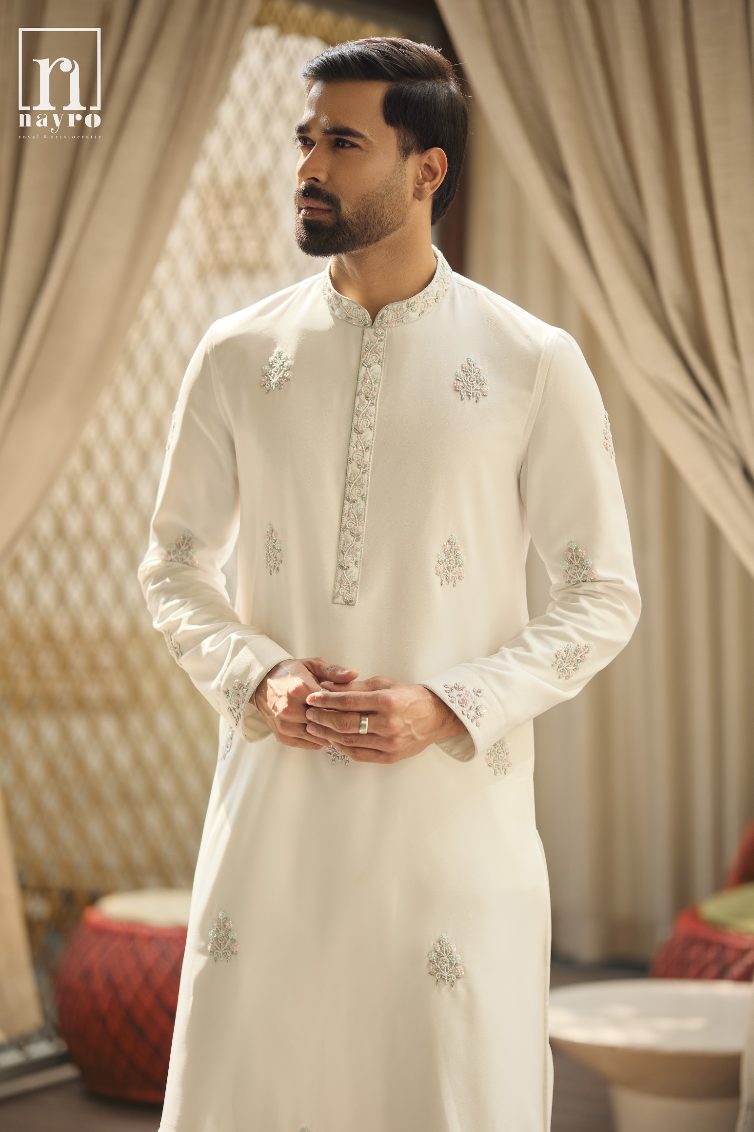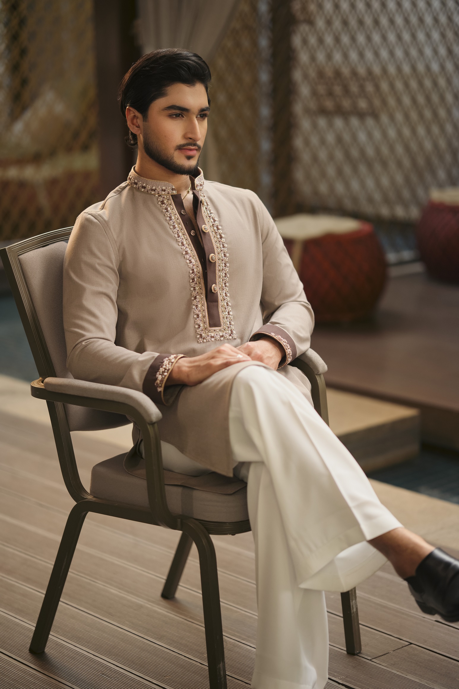 Fabric Color : Brown, zardosi in collar and body sleeve, Handcrafted button.